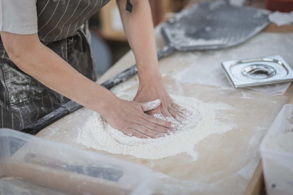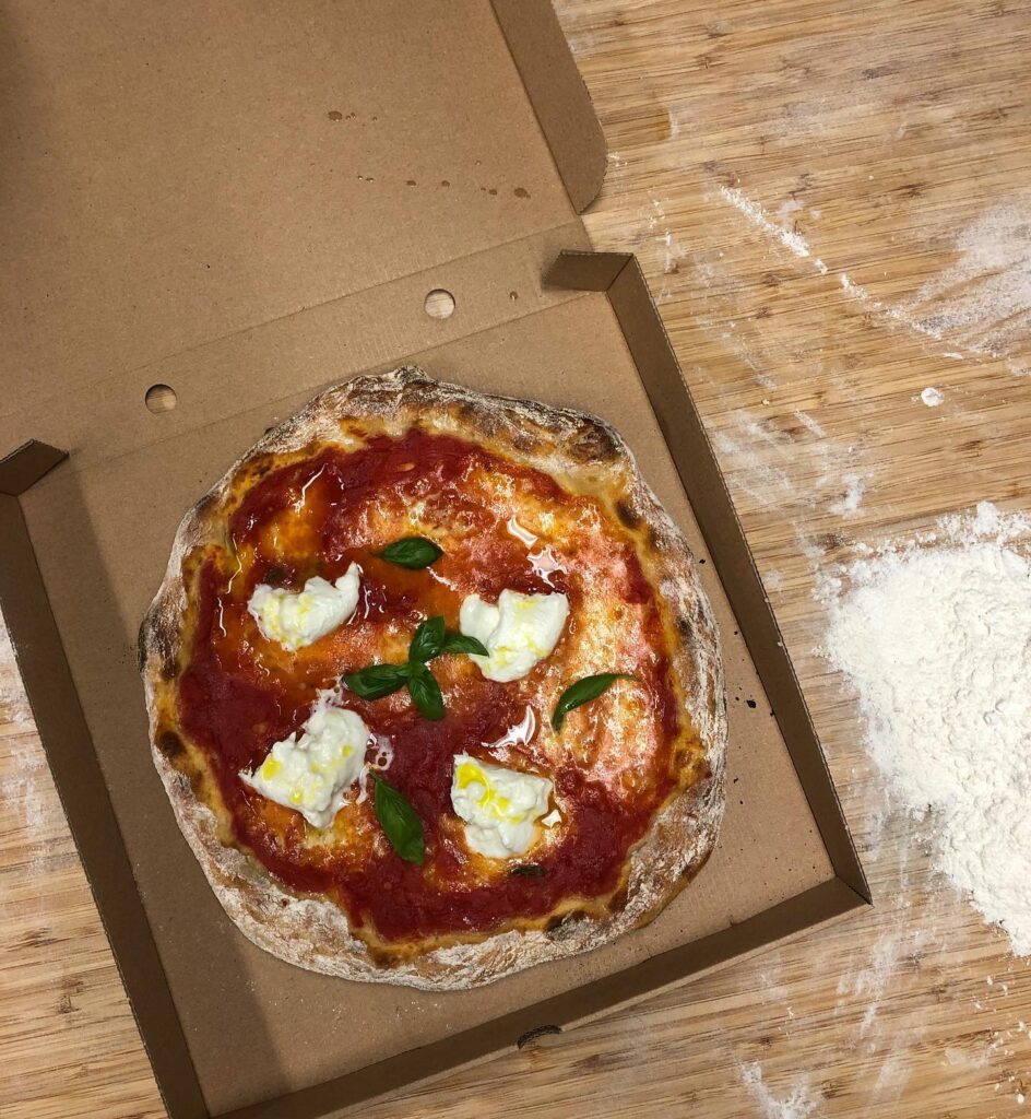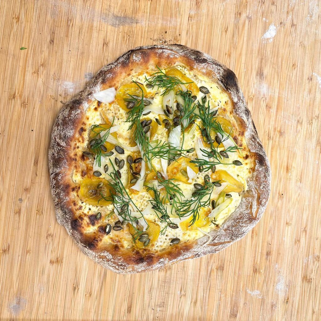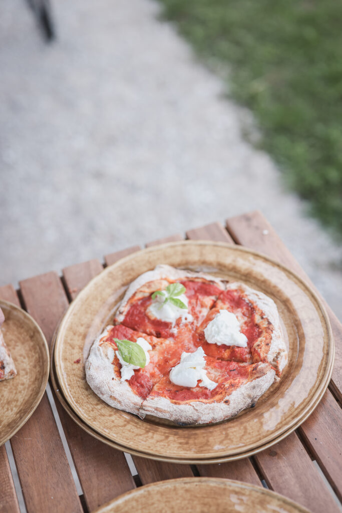 Degen görs på kulturspannmål från bland annat Gotland och Limabacka kvarn, och tomatsåsen görs från grunden på San Marzano-tomater. Menyn följer säsongen och formas av de bästa råvarorna vi har tillgång till just då – alltid med fokus på ekologiskt och lokalt.