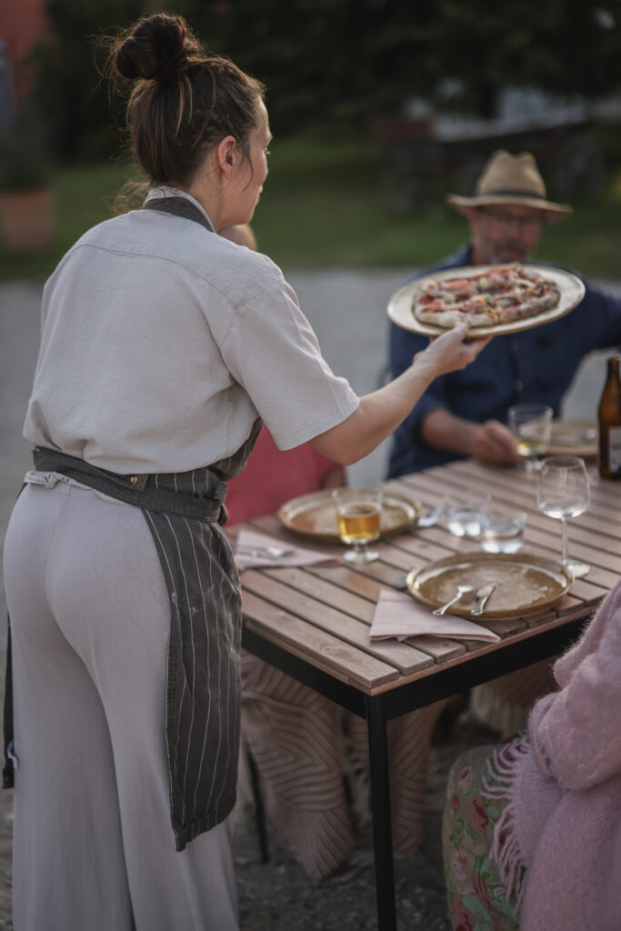 Vi inleder med en förrätt som sätter tonen för kvällen. Därefter tar Sara vid i vedugnen, där pizzor gräddas med omsorg och serveras i flera omgångar. Varje servering bjuder på nya smaker och kombinationer, skapade för att upplevas tillsammans, i lugn takt.